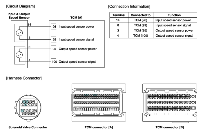 Input speed sensor (A) and output speed sensor are integrated and installed
