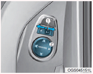 Move the lever (1) to the L (Left) or R (Right) to select the rearview mirror you would like to adjust.
