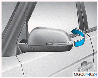 Do not fold the electric type outside rearview mirror by hand. It could cause motor failure.
