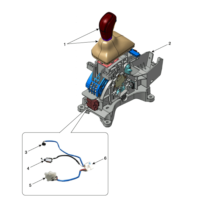 | 1. Shift lever & boots assembly 2. Shift lever assembly 3. P position switch |