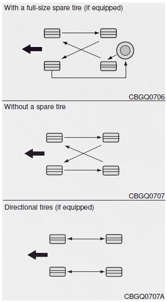 To equalize tread wear, it is recommended that the tires be rotated every 12,000 km (7,500 miles) or sooner if irregular wear develops.