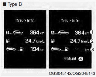 This mode displays the instantaneous fuel economy while driving when the vehicle speed is greater than 10 km/h.